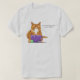 Orangefarbene Katze mit Spielzeug und einer lila Kaffee-Tasse, die erklärt, dass sie den perfektesten Katzenpapa aller Zeiten haben!