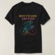 Dieser schwarze T - Shirt enthält den Text "BEST CYCLING VATER EVER" in orangefarbenen und rosa Gradientenbriefen. Unterhalb des Textes befindet sich eine stylisierte, farbenfrohe Linie, die von einem Radfahrer gezeichnet wird, der ein Fahrrad fährt, mit Bewegungslinien, die auf Geschwindigkeit hindeuten. Das Design feiert einen Vater, der Lieben Radfahren.