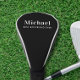 Eine elegante schwarze Golfer-Kopfdecke für einen Golfer-Freund mit seinem mit Monogramm Namen in klassisch-weißer Serifentypografie und "Best Botfriend Ever" in schlichter, moderner weißer Typografie.