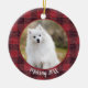 Dieses niedliche Haustier-Ornament kann als Gedenkgeschenk für ein Haustier oder als regelmäßiger Weihnachtsschmuck für einen Lieblingshund oder ein anderes Tier in Ihren Feiertagen gegeben werden. Das karierte Design der Pullover-Textur wird vorne und hinten wiederholt, mit dem Hundenamen auf der einen Seite und dem "besten Hund je" mit dem Jahr auf der anderen Seite. Personalisieren Sie dieses Design, indem Sie Ihr eigenes Foto und Ihren Haustiernamen mit dem Typografy-Bearbeitungstool in der Auflistung hinzufügen.