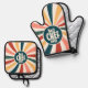 Bester Koch je farbenfrohe Retro-Muster Kochen Ofenhandschuh & Topflappen-Set