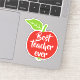 Bester Lehrer je weißer Text rot Apfelkleber. Dieses niedliche typografische Design beinhaltet einen roten Apfel mit grünem Blatt und den Text "Bester Lehrer je" in Weiß. Zeigen Sie Ihrem Lieblingslehrer mit diesem kissenscharfen Aufkleber Ihre Wertschätzung.