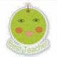 Dieser phantastische, geformte Aufkleber weist einen hellgrünen Apfel mit einem großen Lächeln und rosa Wangen auf. Unter dem Apfel ist Text, der den besten Lehrer sagt.