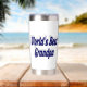 Tumbler mit der besten Opa der Welt in 3D dunkelblauer Text.
