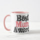 Tasse zum Muttertag. Prämiengeschenk für eine Beste Mama (oder Mama). Der Beste Mum Award ist die fette grafische Botschaft auf dieser rosa und weißen Tasse.