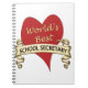 Rotes Herz mit einem goldenen Band, zum besten Sekretärs einer Welt zu ehren Schul