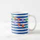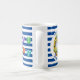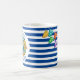 Eine fabelhafte marineblau gestreifte große Wellenreiter-Bullauge-Tasse, ideal, um den Namen Ihres Kindes und eine besondere Botschaft hinzuzufügen. Auf der Rückseite gibt es Feiertage, ideale Tasse am Meer für Ihren Urlaub Zuhause, oder geben als Geschenk der Ermutigung.