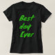 Ein Shirt, das "besten Tag überhaupt" in einer blauen Farbe sagt