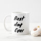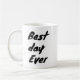 Eine Tasse, die "besten Tag überhaupt" im Schwarzen sagt