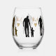 Goldene Briefe und Herzen vorne und hinten mit Silhouetten von Mann und Kind. Vatertag oder irgendein Tag! Stil: Weinglas. Optimiert für das stemless glass.