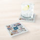 Bester Vater je 4 Foto Collage Blue White Monogram Glasuntersetzer