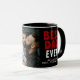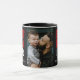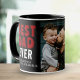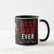 Bester Vater je Black Red Family Foto Tasse. Dies ist eine benutzerdefinierte Tasse für Väter mit einem schwarz-roten Farbschema mit dem Text "Bester Vater je". Der Text ist in trendy fett weiß und rot Typografie auf einem schwarzen Hintergrund. Die Tasse beinhaltet auch ein individuelles Foto, das es zu einem personalisierten und nachdenklichen Geschenk macht. Personalisieren Sie Ihre Familiennachrichten und Namen. Großartiges Geschenk für einen Vater oder Großvater zum Vatertag, Weihnachten oder Geburtstag.