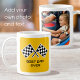 Wave die karierten Flaggen für den besten Papa aller Zeiten! Feiern Sie den Vater mit einer personalisierten Kaffee-Tasse, die auf der anderen Seite ein beliebtes Foto beinhaltet. Ein wunderschönes und einzigartiges Geschenk für Geburtstage, Ferien, Vatertage oder als Alltagsgeschenk für einen fantastischen Vater! Der Text kann angepasst werden, sodass diese Vorlage für eine Mutter, Schwester, Bruder, Onkel, Großvater, Freunde und mehr angepasst werden kann. Farben: gelb, schwarz und weiß.