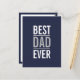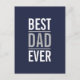 Erzähl deinem Vater, wie sehr du ihn mit der modernen marinebasierten Postkarte "Best Vater Ever" Liebe. Diese Postkarte enthält den Satz "Bester Vater je" in weiß und grau modernen fett serf Schriftart Stil auf marineblau Hintergrund. Perfektes Vatertagsgeschenk für Papa. Mit Designtools können Sie die Farbe einfach an die Farbe Ihrer Wahl anpassen.