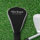 Ein elegantes, schwarzes Kopfcover für einen Golfer Papa mit seinem mit Monogramm Namen in klassisch-weißer Serifentypografie und "Best Vater Ever" in schlichter, moderner weißer Typografie.