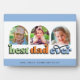 Diese Plakette ist ein wunderbares Geschenk für Papa! Das Design besteht aus drei gewölbten Fotos mit dem Retrotext "bester Papa je". Personalisieren Sie die Namen der Kinder.