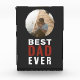 Moderner bester Vater je Vatertag Schwarz Custom Foto Block. Der Text ist in trendiger Typografie auf schwarzem Hintergrund und das Foto in einem runden Rahmen. Passen Sie den Text an und fügen Sie Ihr Foto hinzu. Ein süßes Geschenk für einen Vater am Vatertag oder Geburtstag.