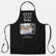 Bester Vater je schwarz benutzerdefiniertes Foto Keepake Schürze. Machen Sie eine personalisierte Schürze für den besten Vater aller Zeiten. Weiße, moderne Typografie auf schwarzem Hintergrund mit Streifen. Fügen Sie Ihr Lieblings-Foto hinzu und passen Sie den Text mit Ihren Namen an. Sie können jeden Text auf der Schürze ändern. Ein schöner Sake zum Geburtstag, Weihnachten oder Vatertag für den Vater.