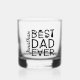 Modernes, trendy Typografie Whiskey Glas. ''Bester Vater je'' ist in einem modernen, stilvollen Drehbuch geschrieben und beinhaltet einen Namen, einen Bogen, einen Hut, einen Schnurrbart und eine Krawatte. Ideal zum Geburtstag, zu Weihnachten oder zum Vatertag. Fügen Sie einen Namen hinzu, um ihn eindeutig zu machen.