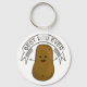 Die reizende braune Cartoon-Kartoffel mit niedlichem Happy-Gesichtsausdruck und Armaturen ist der Schwerpunkt dieses Designs. Oberhalb des glücklichen Gemüses befindet sich ein schwarz-weißes und graues Banner mit den Worten Bester Vater je in schwarzem Text.