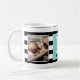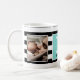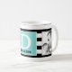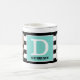 Der glückliche Vatertag! Moderne beste Vater-überhaupt Kaffee-Tasse. Mit Schwarzweiss-Streifen und eines personalisiertem Robins Ei-Blau-Monogramm. Addieren Sie 2 Fotos!