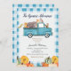 Bestes Adventure Blue Gingham Autumn Baby Shower Einladung Blue Truck Wilde Tiere Pumpkin Patch