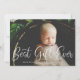 Diese süße und dennoch moderne Urlaubskarte mit weißem Kalligrafieschrift über einem vollblütigen Single, horizontalem Foto. Das Kalligraphieskript grüßt auf der Vorderseite sagt "Bestes Geschenk je". Dieses Design bietet einen Single, ein horizontales Foto auf der Vorderseite der Karte. Auf der Rückseite befindet sich ein festlich rotes und weißes horizontales Streifen-Muster, das entfernt oder angepasst werden kann. Sie können auch ein anderes Foto oder Text auf der Rückseite hinzufügen, indem Sie "Design weiter anpassen" auswählen.