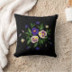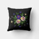 Ein schönes Stickereikissen mit lila, blau-weißem Pansie-Bouquet auf schwarzem Hintergrund ist eine phantastische Zuhause-Dekoration. Perfektes Geschenk zum Geburtstag, Hochzeit oder Party. Ein großartiges Geschenk für Naturliebhaber.