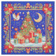 Imitate bestickt Christbaum mit Geschenken unter dem Baum. Der Baum ist draußen unter einem Halbmond.