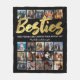 Personalisierte begabte Freunde fleecy Decke mit einem angesagten schwarzen Hintergrund, der in jede beliebige Farbe geändert werden kann, das Wort "besties" in einem Imitat Gold-Folie-Script-Schriftart, ein Freundschaftsangebot, Ihre Namen und eine 20 quadratische Foto Collage Vorlage, damit Sie sich selbst anpassen können.
