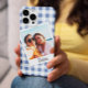 Dieses iPhone-Gehäuse verfügt über einen Sofortrahmen mit Foto und einem individuell anpassbaren Bild über einen blau karierten Musterhintergrund. Personalisieren Sie es mit einem beliebten Foto von Ihnen und Ihrem besten Freund und passen Sie den Text an. Dieses niedliche iPhone Gehäuse ist das ideale Geschenk für Sie und Ihre ganz persönlichen Wünsche!