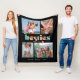 Dieses Foto Collage Decke ist ein Geschenk für Ihre besten Freunde. Das Design ist mit mehrfarbigem Retro-Text akzentuiert, der auf schwarzem Hintergrund "besties" liest. Mit zusätzlichem Text, unten, können Sie Namen hinzufügen.
