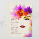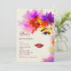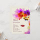 Eine atemberaubende Einladung, die eine teilweise Ansicht des Gesichtes einer Frau umgeben mit Losen Blendung, bunte Blumen kennzeichnet.
