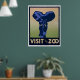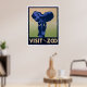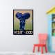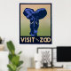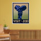 Vintage Poster fördert den Zoo als einen Ort zum Besuch, zeigt einen Elefanten.