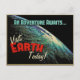 Dieses lustige Vintage Reiseplakat erzählt Ihnen "Ein Abenteuer wartet auf... Besuchen Sie die Erde heute". Ein großer Planet Erde vor einem schwarzen Hintergrund.