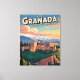 Mit diesem Vintagen Reiseplakat von Granada, Spanien, können Sie die Zeit verbringen. Die Alhambra und die Sierra Nevada sind in warmen andalusischen Farben gehalten. Ideal für Reisende, Spanier und Liebhaber der Retro-Kunst.