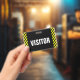 Dieses Abzeichen ist mit einem schwarz-gelb gestreiften Muster versehen, und die Meldung "VISITOR" in fett gedrucktem Text wird angezeigt. Es könnte vielleicht genutzt werden, um Personen zu identifizieren, die autorisierte Besucher in einem Firmenbüro oder einer Veranstaltung sind.