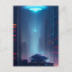 Futuristische Science-Fiction-Szene mit UFOs über einer großen Stadt. AI schuf digitale Kunst.