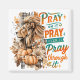 Friedliches, farbenfrohes Design mit einer Herbst/Herbst-Szene mit majestätischen Löwenkopf, Kürbisse und Herbst-Blume. Der farbenfrohe inspirierende Text lautet: "Betet darauf, betet darüber, betet durch ihn". Dieses Design ist auf einer Vielzahl von Produkten erhältlich.