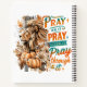 Friedliches, farbenfrohes Design mit einer Herbst/Herbst-Szene mit majestätischen Löwenkopf, Kürbisse und Herbst-Blume. Der farbenfrohe inspirierende Text lautet: "Betet darauf, betet darüber, betet durch ihn". Dieses Design ist auf einer Vielzahl von Produkten erhältlich.