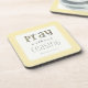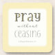 Untersetzer mit kurzen, aber mächtigen Schriften Vers aus 1 Thessaloniki 5:17, "Bete ohne Ende" in einem modernen Geschichtenerzähler-Schriftart. gelber Hintergrund; das Wort "Beten" mit demselben gelben Akzent.