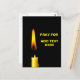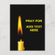 Brennen Wachskandle aus gelber Farbe vor schwarzem Hintergrund und ein Text Pray For ADD TEXT HIER. Sie können Ihren eigenen Text hinzufügen. Um Beileid auszudrücken. Vertikal