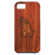 Schöner christlicher hölzerner Beschaffenheitsmahagonidruck mit dem Beten übergibt Telefonkasten.