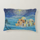 Dieses Kissen zeigt ein impressionistisches Bild von Bethlehem unter einem Weihnachtsstern in der Nacht mit den Worten" Weltfrieden". Sie können die Wörter zu einem anderen Feiertagsgruß ändern, wenn Sie wählen.