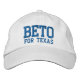 Beto für Texas blau und weiß bestickte Baseballkappe. Erhältlich in vielen Farben und Optionen mit vollständig anpassbarem Text. Karo der Erholung der Auflistung für die Abstimmung der Elemente.