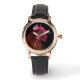Uhr, Klassische Damenuhr mit schwarzen Lederarmband