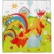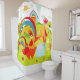 Duschvorhang zum Thema Bauernhof und drei Hütten.