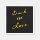 Diese lustigen Servietten werden mit dem Sprichwort "Betrunken in der Liebe" in einer kühlen goldenen Pinselspitze auf schwarzem Hintergrund betont und machen sie zu einem niedlichen Akzent auf einer Verlobungsfeier, Brautparty oder Junggeselinnen-Abschied. Weitere koordinierende Elemente finden Sie im in der Liebe-Sammlung Betrunkenen Junggeselinnen-Abschied.