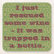 Ein in einer Reihe von Spaß-Untersetzer, die Ihre wahren Gefühle über das Trinken ausdrücken. "Ich rettete gerade etwas Wein - er wurde eingeschlossen in einer Flasche."