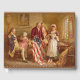 Dieses Design zeigt ein Gemälde des amerikanischen Künstlers Jean Leon Gerome Ferris (1863-1930). Es zeigt die erste Fahne der USA, die von Betsy Ross (Elizabeth Griscom Ross) geheftet wurde, einem amerikanischen Polsterer, der seine Schöpfung zugeschrieben hat. Es heißt, General George Washington, Oberbefehlshaber der Continental Army und zwei Mitglieder eines Kongressausschusses (Robert Morris und George Ross) besuchten Frau Ross. Sie überzeugte George Washington, die Gestalt der Sterne in einer Fahne zu ändern, die er ihr von sechs auf fünf zeigte, indem sie demonstrierte, dass es einfacher und schneller war, letztere zu kürzen. Die Geschichte mag tatsächlich apokryphal sein, aber sie ist inzwischen Teil der amerikanischen Tradition geworden. Die "Betsy Ross"-Fahne mit ihrem leicht identifizierbaren Sternenkreis wird heute als Symbol des Patriotismus und Stolzes in der amerikanischen Geschichte geflogen.
